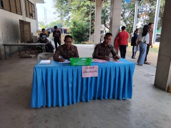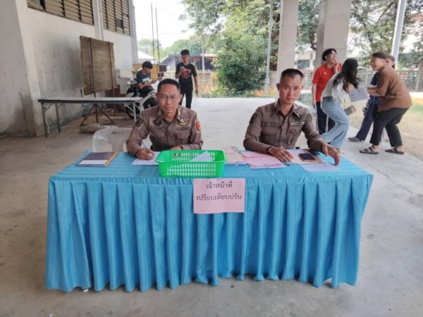 ร.ต.ต.รัฐวุฒิ แก้วกาหลง รอง สว(ป.)สภ.โพธิ์ชัย ด.ต.เสรี กลั่นบิดา ผบ.หมู่(ป.)สภ.โพธิ์ชัย เจ้าหน้าที่เปรียบเทียบปรับ ว.4 ร่วนกับทางอำเภอโพธิ์ชัย ในวันคัดเลือกทหาร ประจำปี 2568 ณ หอประชุมอำเภอโพธิ์ชัย