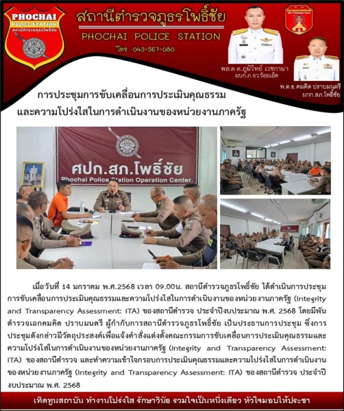 ประธานในการประชุมชี้แจ้งการประเมินคณธรรมและความโปร่งสในการดำเนินงานของหน่วยงานภาครัฐ