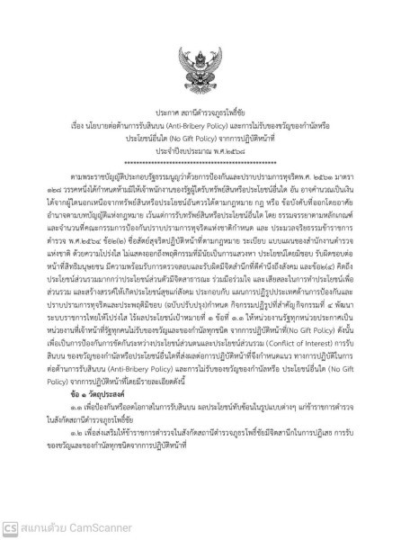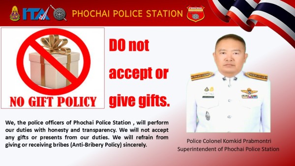 ประกาศ สถานีตํารวจภูธรโพธิ์ชัย เรื่อง นโยบายต่อต้านการรับสินบน (Anti-Bribery Policy) และการไม่...